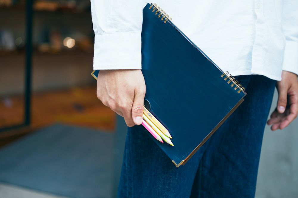 自分で使うアイテムは、極力悩みたくなくて。このノートなら、中紙を取り替えられて、ずっと同じものを使える。いつもの定番アイテムが決まっていれば、使い終わっても次のものをどれにしようか悩む時間が減りますよね。その時間があるなら、創作活動に充てたり、大切な人と過ごしたりしたいんです。