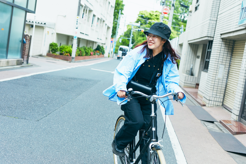 待ち合わせ場所に指定された吉祥寺の裏路地に現れたのは、颯爽と自転車に乗るヨシノさん。