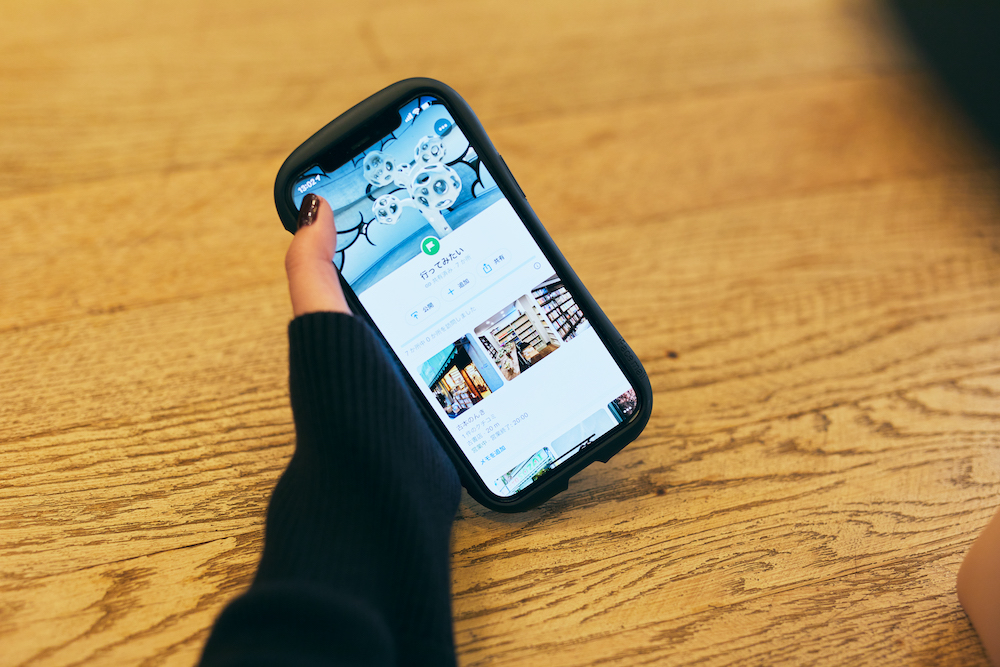 Google Map の“行きたいリスト”にお店の情報をピンしてきたので、場所を確認しています。それから、Instagramでお店が発信しているコンセプトや通っている人の雰囲気を見ているんです。気になったお店にすぐに飛び込むことはあまりありません。一度持ち帰って、安心するまであれこれ調べてしまいますね。