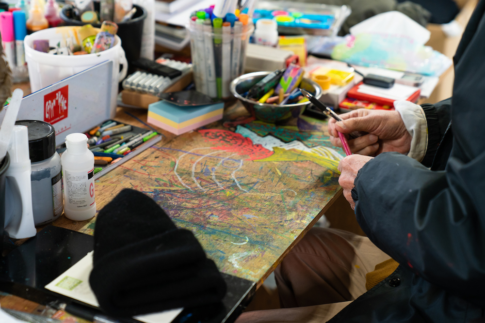 ニューヨークに住んでいた時、9.11で亡くなった消防士の子どもたちと一緒に絵を描いたり、阪神淡路大震災や東日本大震災の時も被災地でもライブペインティングをしたりして、絵というものが結構人の役に立つということを体験してきたわけです。そういうことが僕は面白いし、僕のやりたいことで、それを美術館でもできないかなと思ったんです。だから展覧会といっても「俺の絵を見てほしい」というわけではなくて、「絵を描くことは面白いんだ」ということ、そして「絵は誰かの役に立つんだ」ということを皆さんに伝える場にしたい。展覧会中にそういうことをみんなでできればいいなと思って、することにしました。