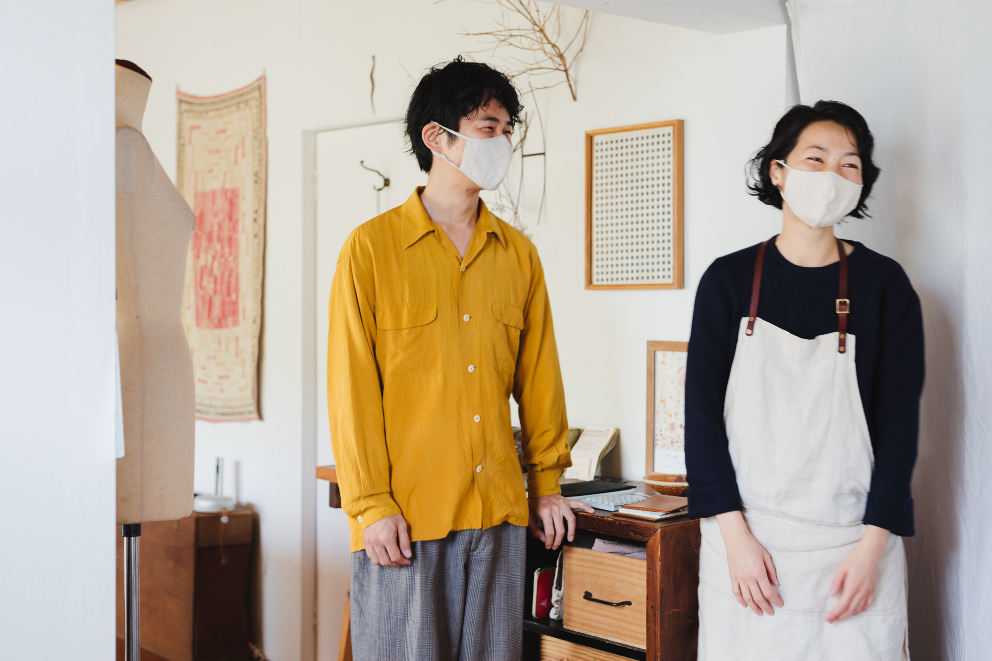 最初は飲食店でアルバイトをしながら、そのお店でお直しの受付をさせてもらったり、お客さんのお宅に伺って洋服をお預かりし、自宅で直してお届けしたりしていたという佳名子さん。アパレルで縫製やリメイクの仕事をしていた博之さんを誘い、2018年からは二人でお直しの仕事をしています。
