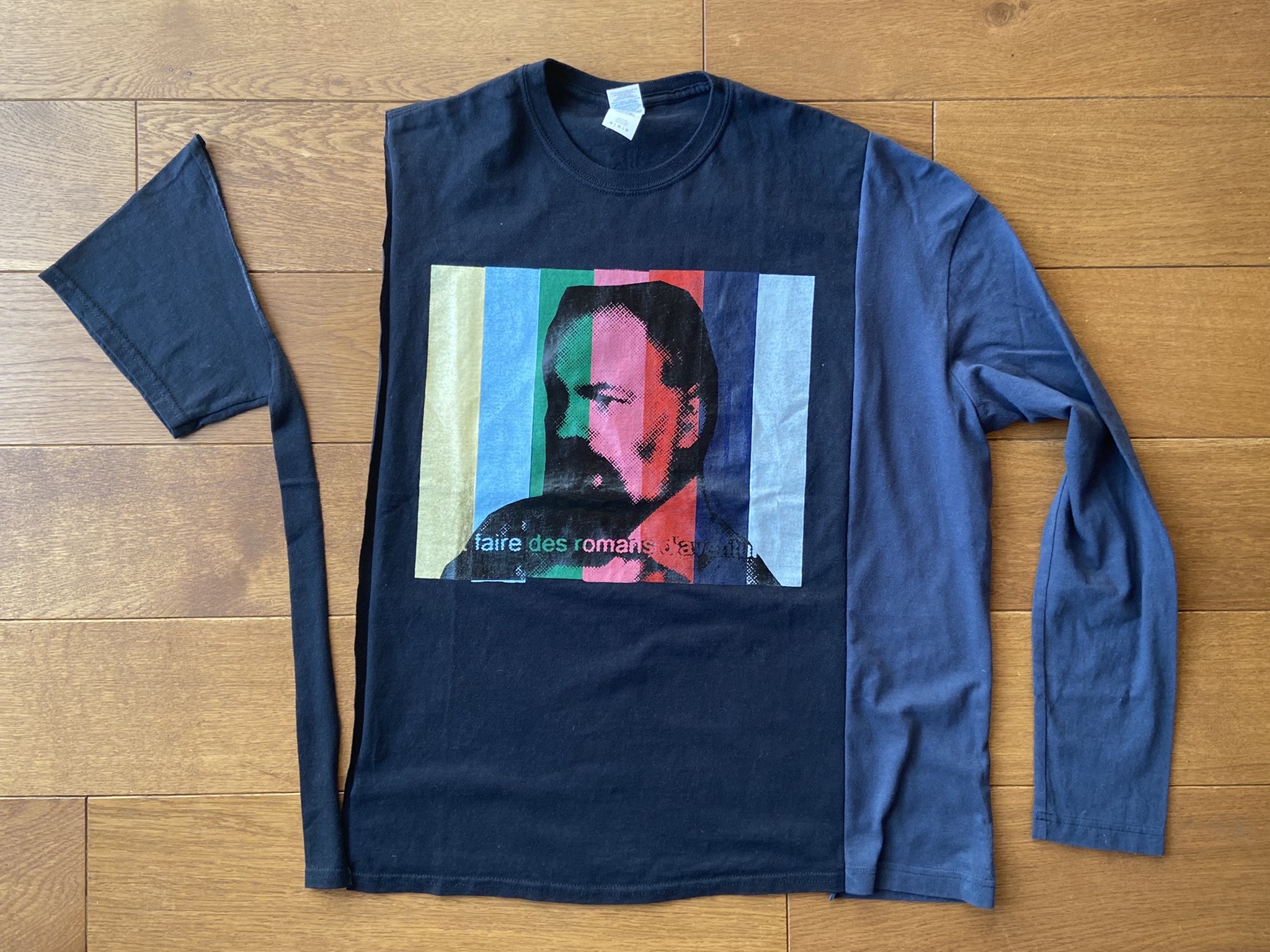 大学生の頃に購入し、大切にしていたブランドのTシャツ。大きなプリントを活かしつつ、新しい姿に生まれ変わりました。ビックシルエットでメンズレディース問わず着こなせそうです。