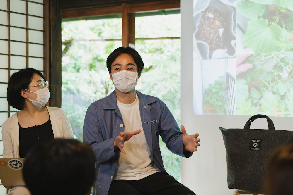 続いて、実際にコンポストをされている「LFCコンポスト」ユーザーの3名が登場。未来定番研究所もある谷中に新しく誕生したホテル「YANAKA SOW」を運営される永山さん。1年前からLFCのスタッフとして働かれている内山さん。そして、調理師学校の学生であり、先日20歳になったばかりの大垣さんが拍手で迎えられ、それぞれコンポストをどう使っているのか、トークセッションが始まりました。