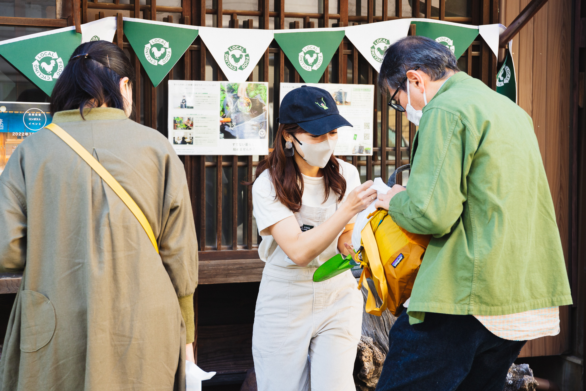 過ごしやすい気候で、人通りも多い午後の谷中。お馴染みとなったLFCの堆肥回収会からこの日も始まりました。今回は通常の予約枠を超える数のお問い合わせをいただき、堆肥を抱えたLFCコンポストユーザーのみなさまが続々と軒先に集まります。
