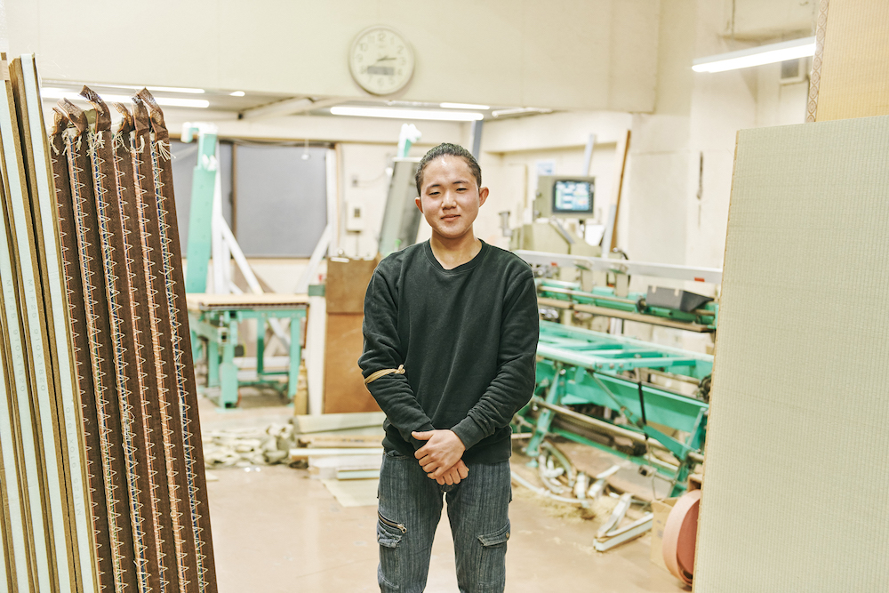 実家が畳店を営んでいるのですが、小学校の卒業スピーチで話すことがなくて、特に深く考えもせずに「実家を継ぎます」と言ってしまったんです。みんなに宣言しちゃったし、父や祖父が喜んでいる姿を見て「もう自分は畳の道に進むしかないな」と思うようになりました。高校卒業して、いよいよ本格的に家業を継ぐにあたって、「親と一緒だと甘えが出てしまう」という父親の提案で、外に出て修行をすることになったんです。〈金井畳店〉は父が出してくれた選択肢のひとつ。最初は京都の畳店で修行をしたいと思っていたのですが、修行先を決める段階で〈金井畳店〉にも2、3回通わせていただいて。その時に、僕が今後どうなっていくのかというビジョンを紙に書いて渡してくれたんです。一級畳製作技能士を受けられる7年先までのビジョンが書いてあり、そんなに真剣に考えてくれていることがありがたくて、ここで学びたいと思い弟子入りを決めました。今は週2回、畳専門の職業訓練校に通いながら、親方とその上の会長と3人で働いています。