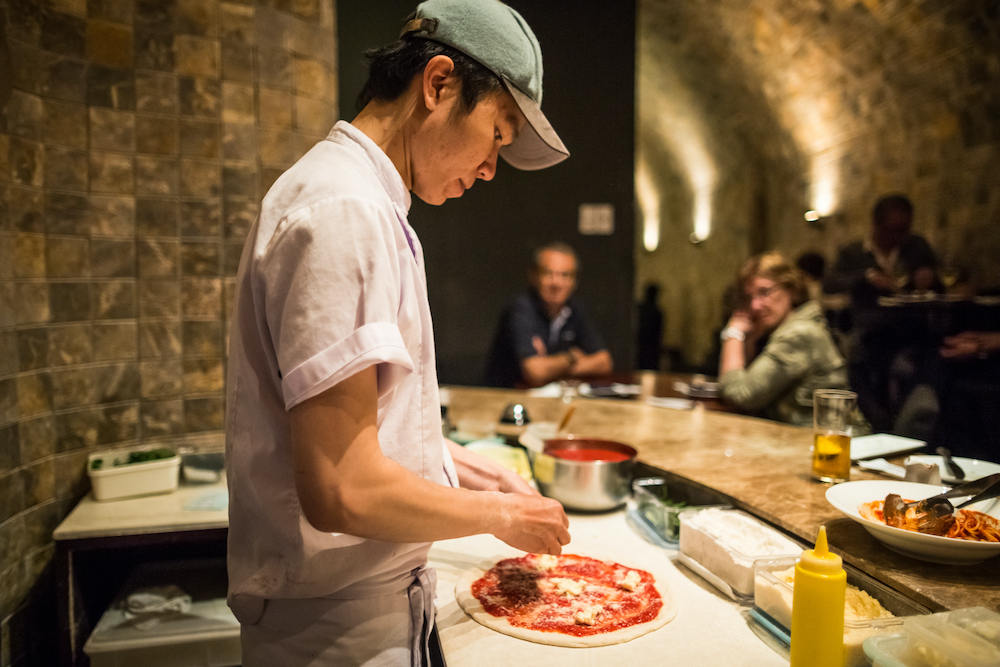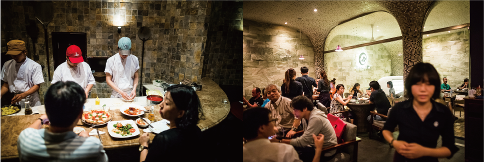 現地に住む人や旅行客で賑わいをみせるPizza 4P’sの店内