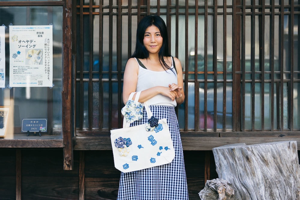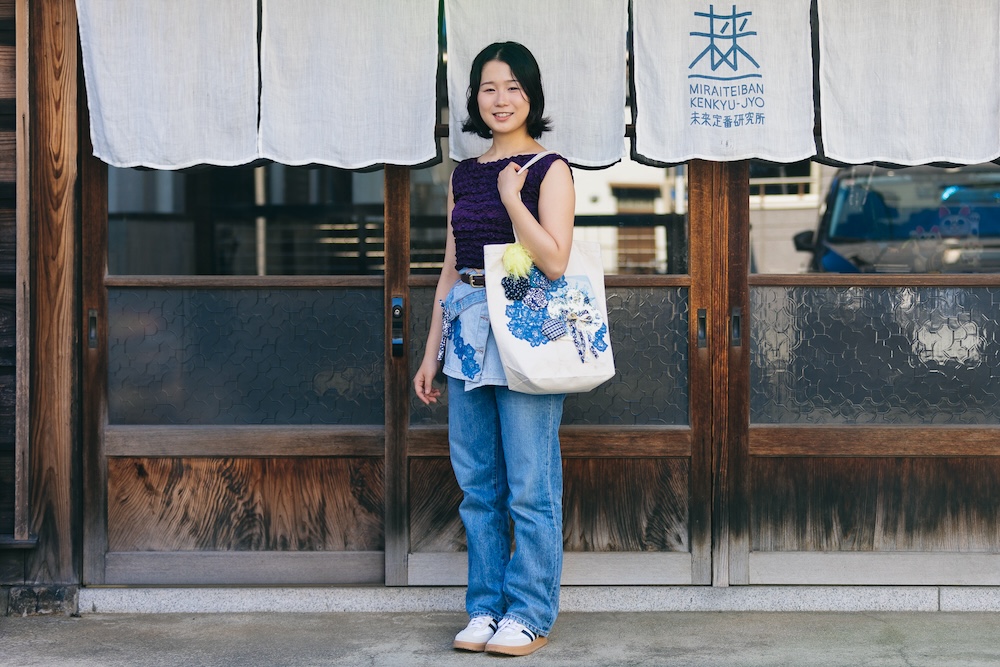 未来定番研究所にほど近い〈薬膳カレー じねんじょ〉でランチをした帰りに、たまたまポスターを見かけて参加。「谷中ぎんざでよく買い物をするので、建物の存在は知っていましたが、こんな素敵な取り組みをしていたなんて。活動を知るきっかけにもなって良かったです」と、みほさん。ちなみに、裁縫はお子さんの通園バッグ以来だったそう。