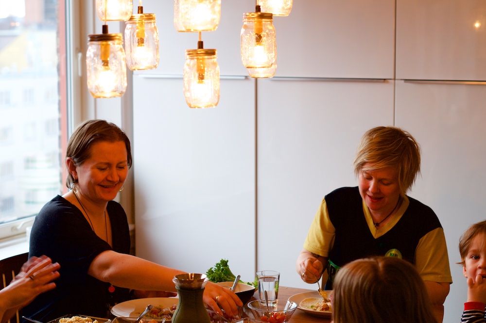 「一緒にうちでディナーをどう?」この夜、ふるまってくれたのはノルウェー人家庭で根強い人気のタコスでした。ノルウェーでは金曜の夜は、タコス!と決めている人も多く、”tacofredag(タコフライデー)”という言葉が存在するほど。「とにかく簡単でおいしい、子どもたちの大好物。でもうちは肉を食べないからサーモンタコスね」とシリエさん。食事を含む家事の分担はせず、常に手の空いたほうが協力して行うそう。食卓のセッティングから食事中の子どもたちへの配慮、声掛け、片付け、そして食後のコーヒーを淹れる姿まで。そこにあったのは、ただ「仲睦まじい保護者ふたり」と愛くるしい子どもたち。ごくごく自然な光景です。