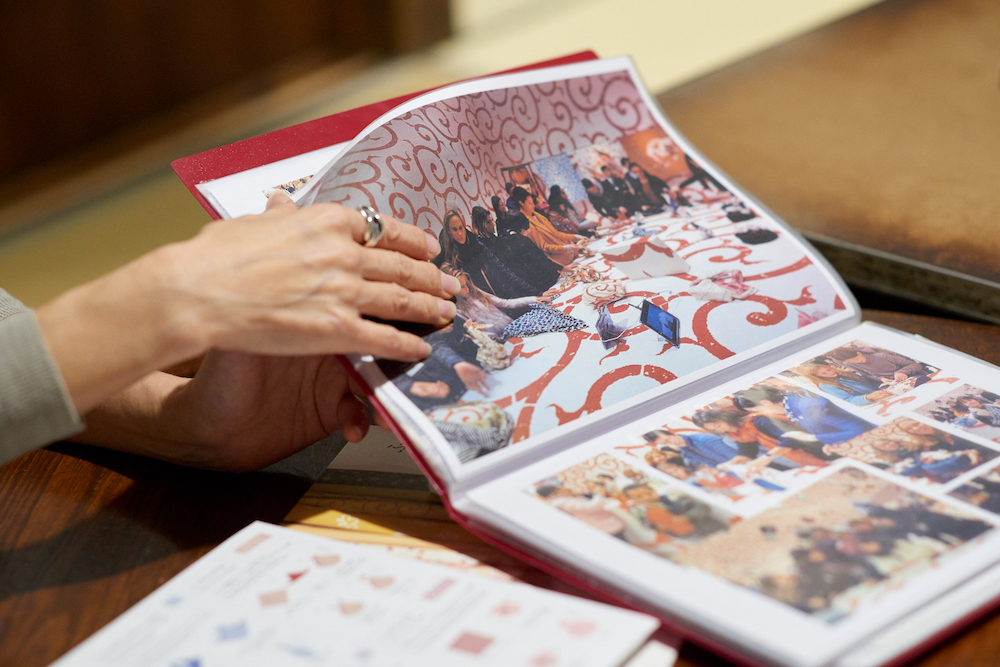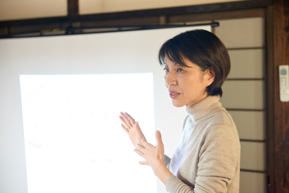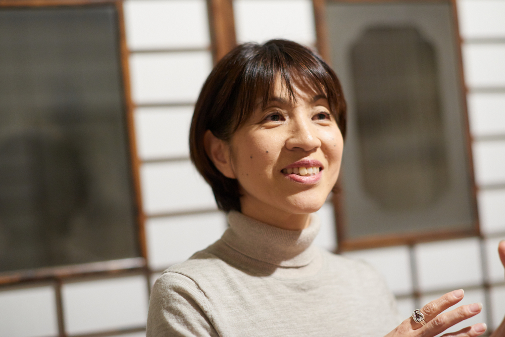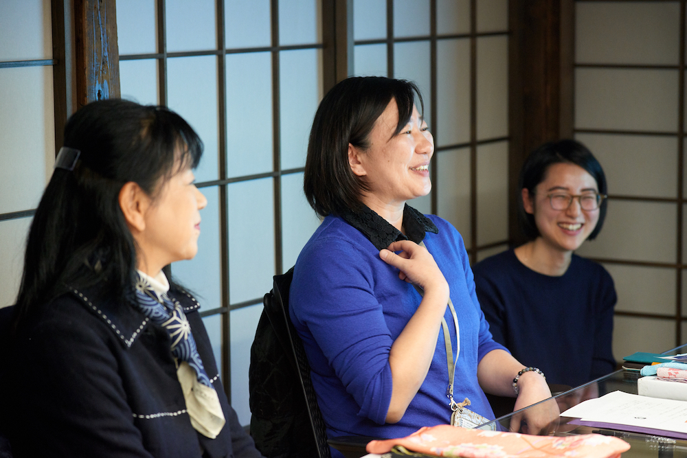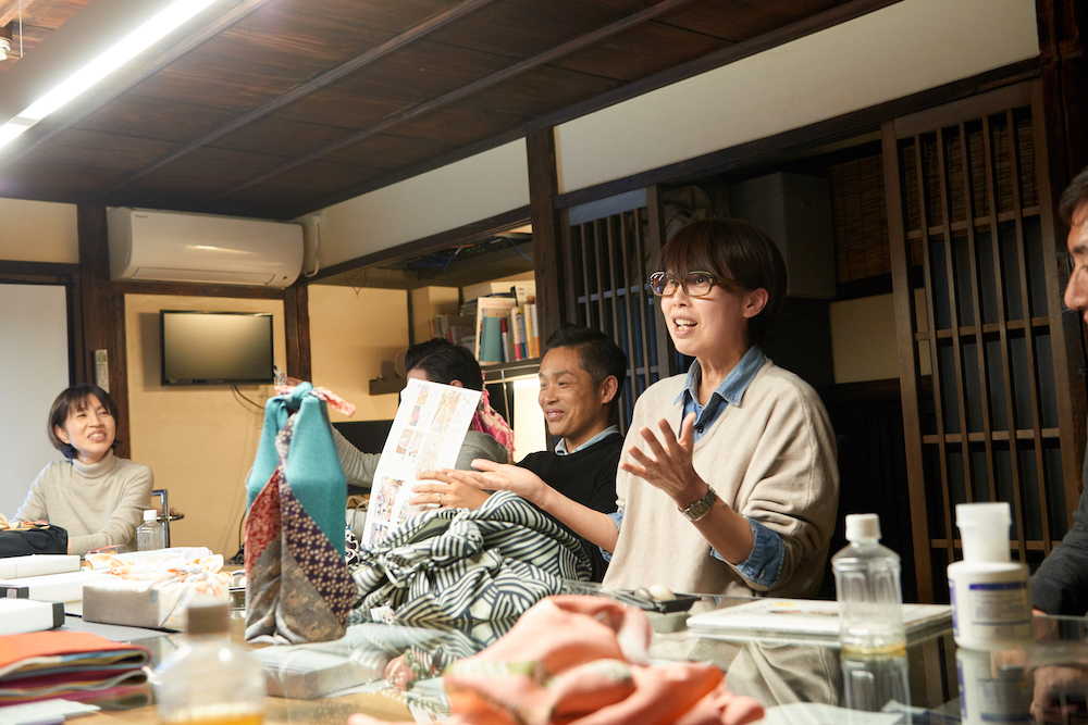 ゲストにお迎えしたのは山田悦子さん。京都の風呂敷メーカー山田繊維/むす美の広報を担当しています。現代の生活に合った風呂敷の使い方を提案するワークショップを国内外で開催し、『ふろしきスタイル』(NHK出版)など著書も多数出版されています。サロンが始まる前に、ご自身の活動や今後の展望について話しを聞かせてくれました。