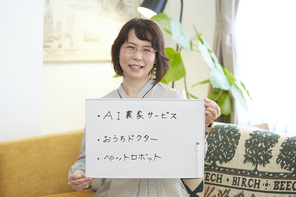 そこで、安全をベースに家電の定義を大きく捉えて、新・新三種の神器を考えてみました。まず、1つ目は「AIの農家サービス」です。農家の方の経験や勘にもとづくスキルをAIでデータ分析して、水やりや収穫ができると、食糧難や価格の高騰の心配が減り、安全な青果物を自分で生産できるようになるのかなと思います。