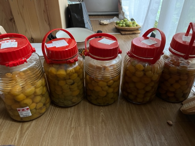 東京のご近所さんから分けていただいた約30kgの梅をシロップなどに。