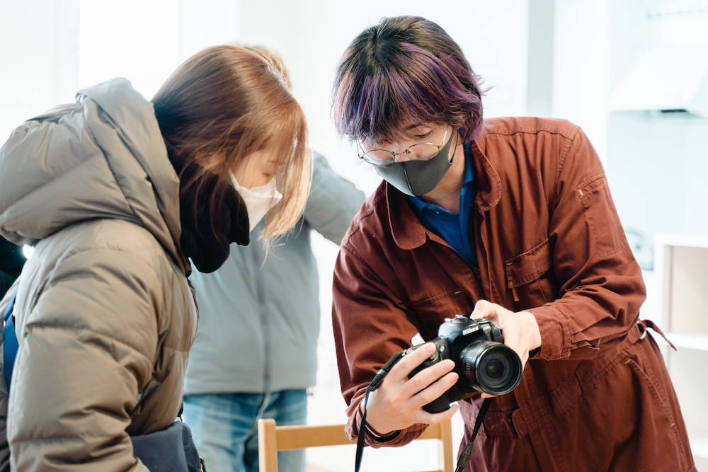 いろんな授業があります。東川町に住む方々を講師に招いた授業だと、冬に開催したロングコース(3ヶ月コース)で作った、カメラとクラフトのクラスのが印象的です。。カメラクラスでは、写真の撮り方やカメラの使い方を学ぶというコンセプトでしたが、講師の方が「僕はカメラの技術は教えない」と。使い方よりもどう切り取るかとか、しっくりくる自分の画角や気持ちのいいトーン、そこから自分は何が好きで、心震える瞬間は何かというのを授業にしたいとおしゃったんです。また、「心が動く瞬間だけにフォルムを切ってみて」と毎週1本ずつフィルムカメラを生徒に渡して、次の授業に必ず回収するということを続けていました。そうすると、1週間で撮る量が増減するんです。今週はすごく心が動いているなというときもあれば、全然進まないなというときもある。人ばかり撮っていたり、自然ばかり撮っていたり。現像してみて初めてわかります。とてもユニークな授業でした。