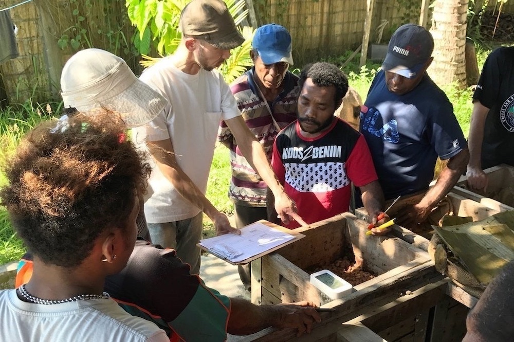 おいしいものを作るための良質な素材調達に欠かせないのが、「農園との関わりを新しくする」ということ。これも〈Minimal〉ならではの特徴のひとつだと思います。良い素材を確保するために、農園にも足を運びます。我々が設定する基準を満たすカカオ豆を、手間をかけて育ててもらった分市場の価格より高く買い取ります。それは彼らの生活向上にももちろんつながりますが、それ以上に彼らが素材の品質に目を向けるようにもなります。僕らは素材以上のものは作れないので、素材の質が良くなること、そのために彼らのものづくりへの視点が変わること、そして農家とより良い関係を続けていくことも大切にしています。