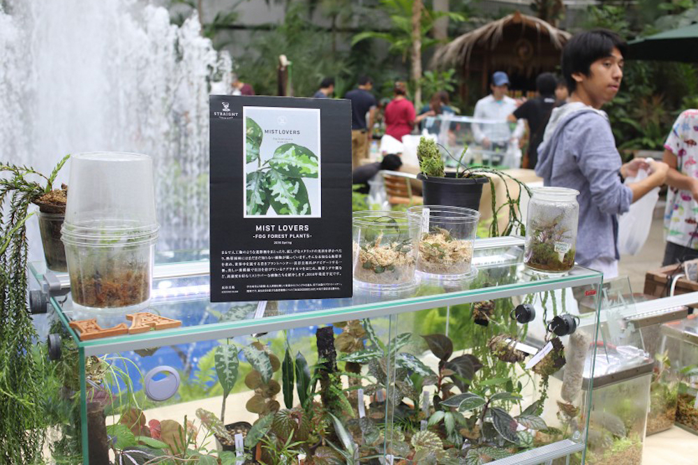雨林植物を扱う店が多数出店するイベントBORDER BREAK。各ブースにはガラスケースやプラケースに入った植物がズラリと並ぶ。