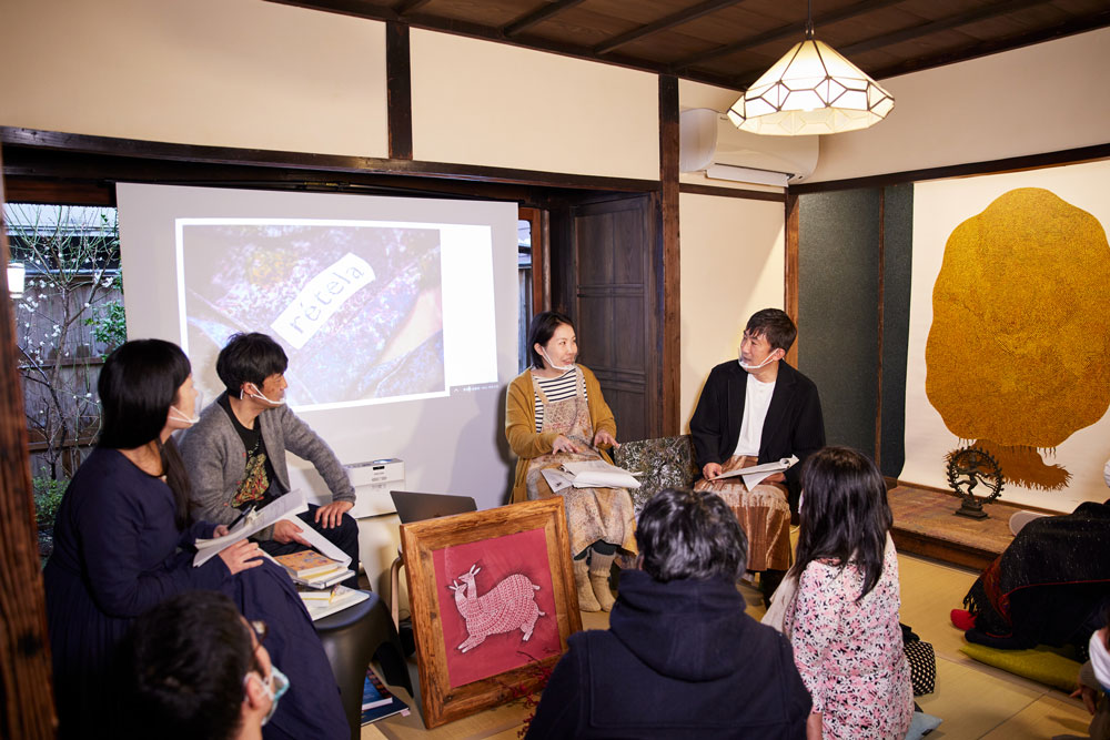 まずは、南インド・チェンナイの小さな出版社〈タラブックス〉について、〈KAILAS〉のお2人によるトーク。『タラブックス ちいさな出版社、まっすぐに本をつくる』(玄光社)で紹介された〈タラブックス〉が手掛ける本の魅力や想い、制作の背景についてのお話は、普段なかなか聞けない内容で、参加者も興味津々の様子でした。