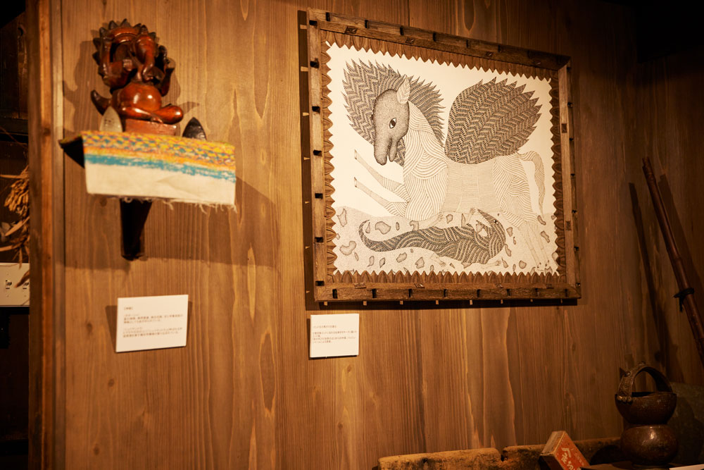 会場には、松岡さんがインドから持ち帰った、貴重な伝統工芸やゴンド画の原画なども展示。