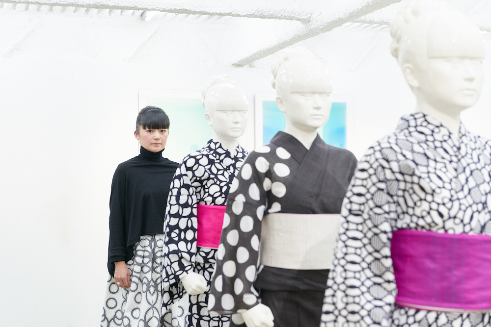 着物の世界は、柄の存在が技術革新に大きな影響を与えてきました。私の作品は正円と直線によって構成されているため、布の収縮や様々な特性などにより、正確に再現することが常に難しいのですが、ものづくりの過程で、私の生み出した柄がきっかけとなり、新たな試みが行われ技術革新に繋がるようなことがあります。新しいことに挑戦してくださる職人さんに出会えて、自分の柄の存在意義を実感できたときは、本当に嬉しいですね。伝統といわれるようなすでに確立されたものと向き合うような場面では、その本質を丁寧に見極め、守るべき部分は引き継ぎながら、必要に応じて、現代の暮らしや感性に沿うものにアップデートしていけたらと思っています。