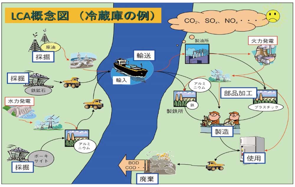 Life Cycle Assessment(ライフサイクルアセスメント)の略。目に見えている製品の環境への影響だけでなく、その製品が生まれるまで、および廃棄されるまでの“製品の一生(ライフサイクル)”での環境への影響を調べる手法。