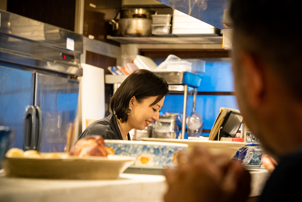「郷土料理がなくなるかもしれないという、誰にも頼まれてもいない危機感を抱いてはいますが、私は本当にただ食いしん坊なので、この先も郷土料理が食べたいだけなんですよ。それを叶えるため、地元のお母さんたちが得意料理を振る舞うようなお店を、全国47都道府県に作りたいと思っていて。空間やメニュー、器は私なりの解釈で落とし込みたいですが、地元の人がそこで働いてちゃんと稼いでもらう。郷土料理を通じて学んだ知恵や工夫にならってアップデートすれば、古臭いなんてこともなく、この先も時代に即したカタチに進化していけるはず。その土地の料理と器、そしてそこでせっせと働くいい女たち。そんなお店を目当てに全国から人が集まってくる。核家族化や個食が進んだ今だからこそ、大皿に盛られた郷土料理やおばんざいを囲んで、みんなで食べられるような空間を全国につくりたい。それが今の私の目標です」