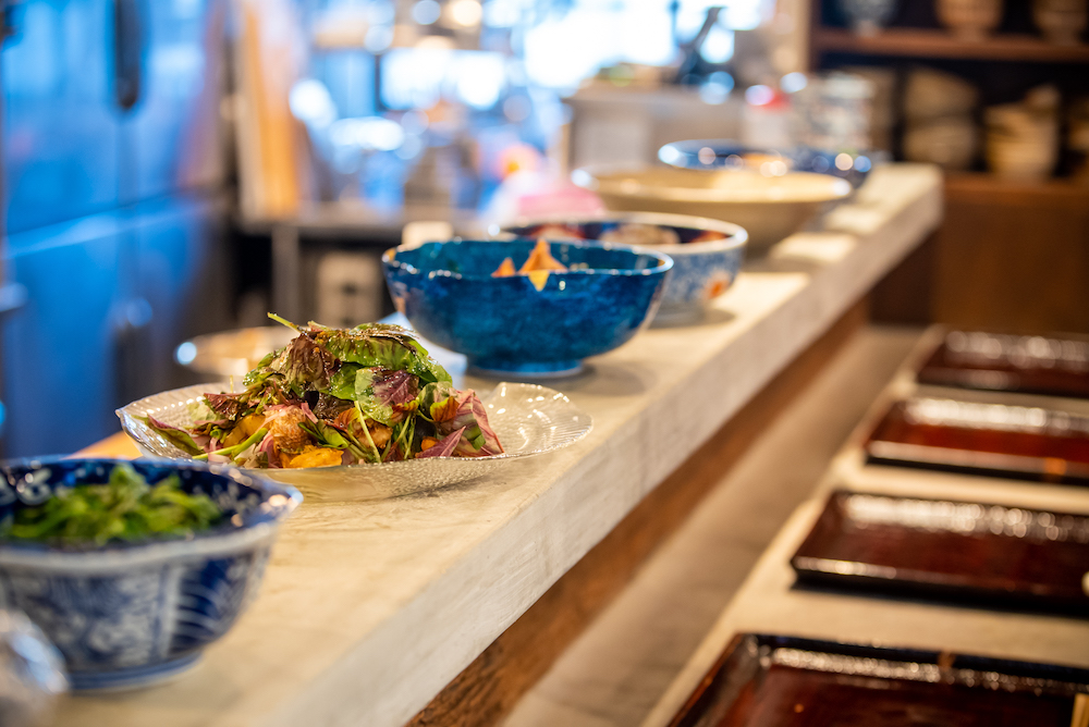 カウンターには、その日仕入れた食材で作ったおばんざいが並ぶ