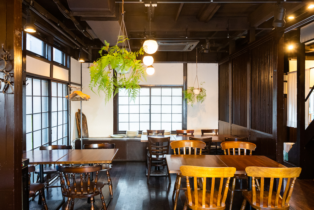 カウンターのほか、8人がけの大テーブルや、小グループ向けのテーブル席が揃う〈台所ようは〉