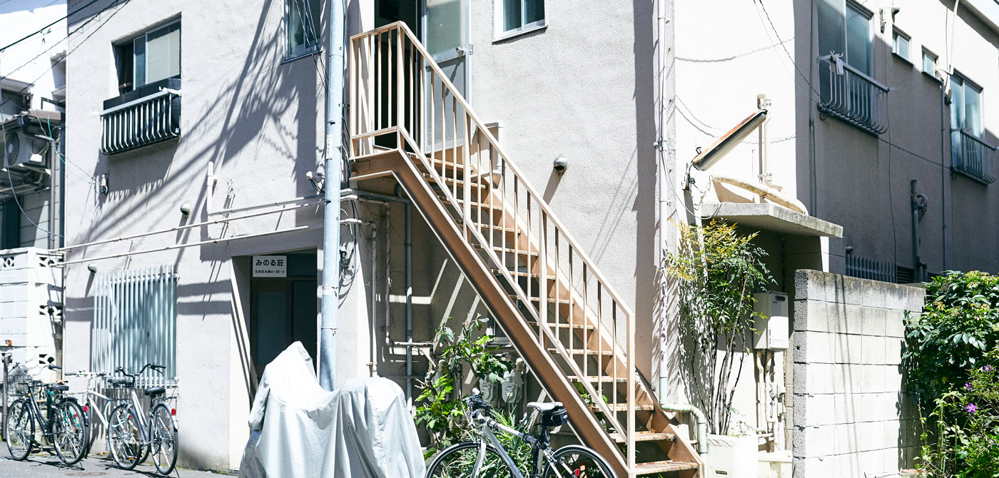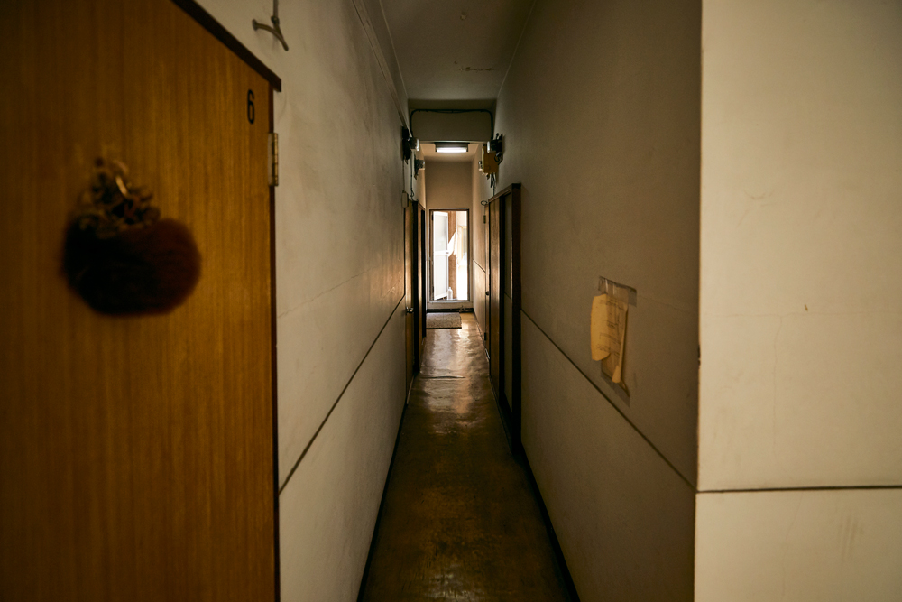 アパートの廊下。1964年の東京オリンピックとほぼ同じ頃にできた物件とのこと。