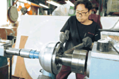 「へら絞りは回転する絞り機に金属板をセットして、その動きに合わせてへら棒を押し付け、設計図通りの形にしていくんですが、へら棒を巧みに操る技術はもちろん、金属の特性や厚みを見極める力が必要なんですよね。手の感覚と勘所が大切になってくるし、それを見誤ると材料が割れてケガをする恐れもある。当時は先輩たちが教えてくれるという概念がない時代だったので、先輩たちが作業する姿を必死に見て技術を盗んでいました。あまりにもしつこいもんだから、『お前には構ってらんねぇ』なんて言われたりして」
