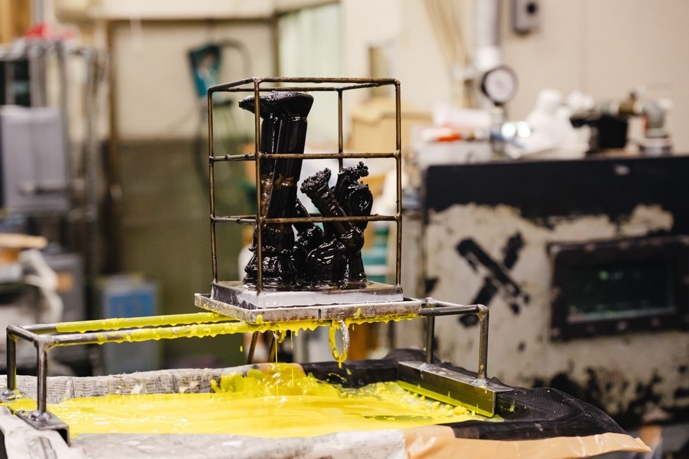 ソフビ製作は、粘土で作った原型をワックスに置き換えて、金型を製作。そこに材料を流し込んで成形した後、塗装を加えて完成します。当初、原型製作と塗装以外は外注していましたが、2016年からは成形にも取り組むように。しかし、そこでも大きなハードルが立ちはだかります。
