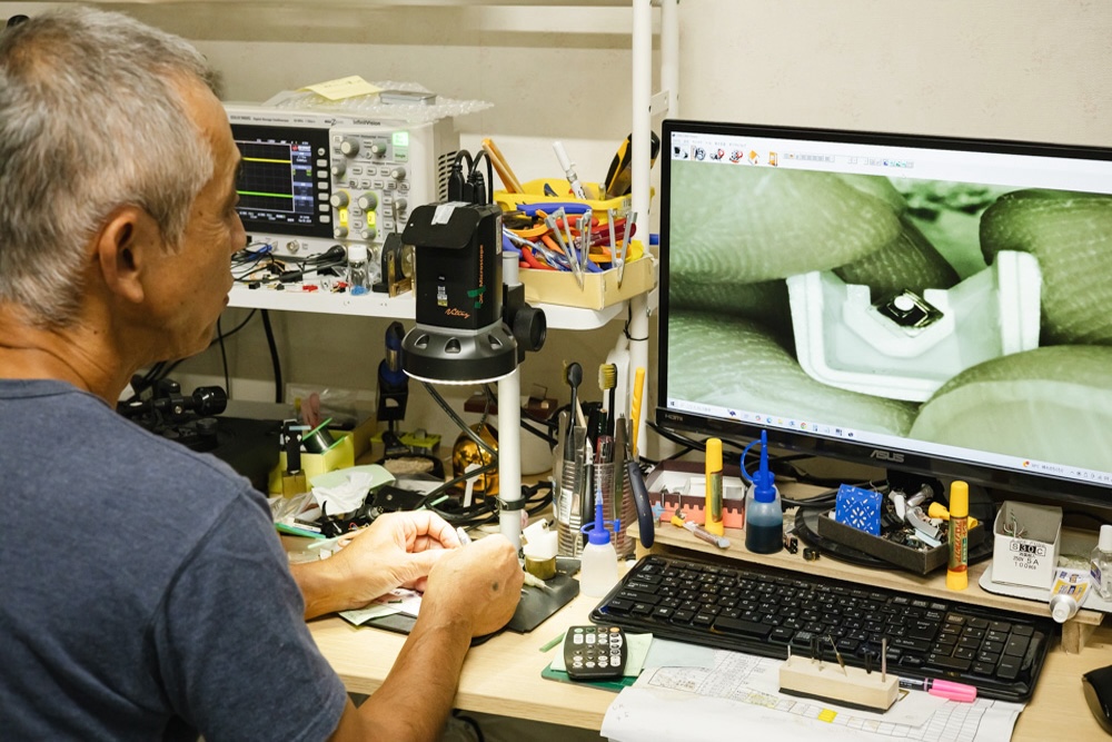 多くの企業がレコード関連事業から撤退する中、カートリッジ製造を引き継ぐことを決意した齋藤さんのお義父さん。とはいえ、営業職だったため製造の方法と技術は持ち合わせておらず、〈中央電子工業〉の技術者に教わることからスタート。技術者の知識や、一緒にものづくりを行う従業員の力を借りながら、レコードプレーヤーメーカーに向けたOEM商品を製造し始めます。