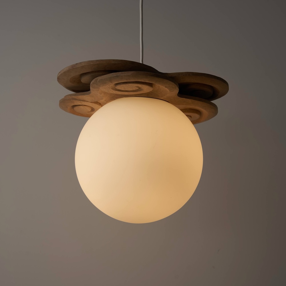 今春始動した〈IPPA〉のペンダントライト。井波彫刻の代表的なモチーフ「雲」がデザインされている