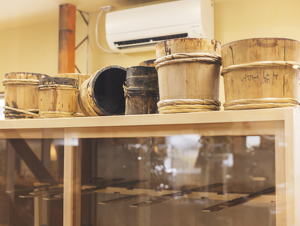 塗工房には、漆の塗膜を均一に固めるための回転室(むろ)が。一般来場者が見学できるよう、通常の木の扉ではなくガラス扉を採用した。「昔は弟子が夜中に起きて回転させていましたが、今は自動で回転させています」と関さん