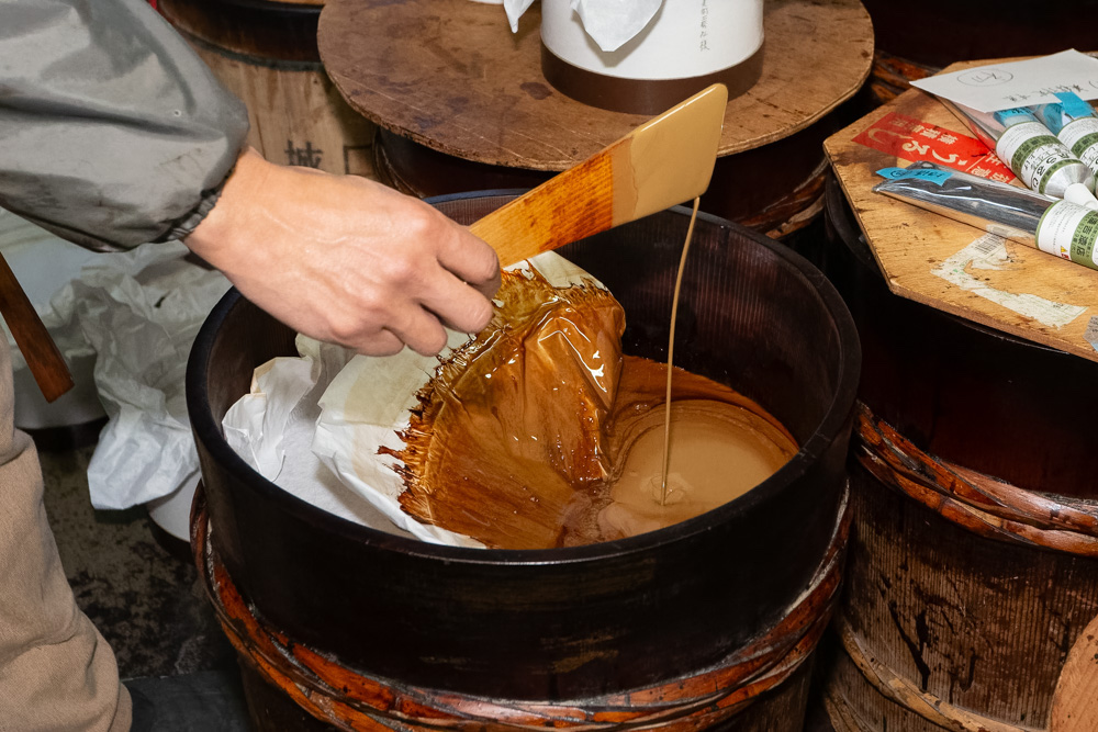 うちは、ウルシの木から採取された樹液を仕入れて精製し、塗料として販売する漆メーカーです。販売した漆は、国宝や文化財、社寺などの修復に使われています。天然素材である漆は一つひとつ性質が違うため、その個性を見極め、塗師(ぬりし)と呼ばれる職人さんの好みや塗る環境に合わせた漆を作ることが仕事。その工程は多岐に渡ります。「荒味漆(あらみうるし)」と呼ばれる樹液を検品し、木屑などを取り除いて「生漆(きうるし)」を精製。さらに、漆の粒子を均一化する「ナヤシ」、加熱して余計な水分を取り除く「クロメ」といった工程によって、漆のツヤや乾き、粘度を調整し、顔料などで調色し完成させます。漆は温度や湿度に影響を受けるため、機械的に精製できません。職人が試行錯誤しながら作るため、とても手間がかかるんです。