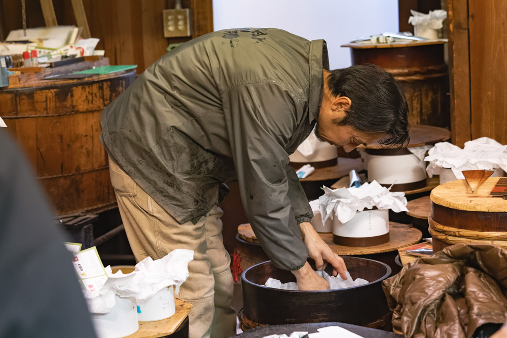 手伝ったことはおろか、漆のことも全然知りませんでした。ただ、幼い頃、祖父が仕事をしていたこの工場によく遊びに来て、漆を塗った竹とんぼを作ってもらったり、壊れたものを漆で直してもらったりしていました。そんな祖父の姿があまりにもかっこよく、「漆ってすごいなぁ」と子どもながらに感じていました。それで家業に入って、自分で漆の精製をしてみると、めちゃくちゃ面白くて夢中になりました。1〜3日かけて樹液を練るうちに色や質感が変化するのですが、その様子がとても艶めかしくて。急に雨が降ると質感が変わってしまうなど、漆には常に振り回されっぱなし。自然と対峙している感じが面白くて、すっかりハマってしまいました。