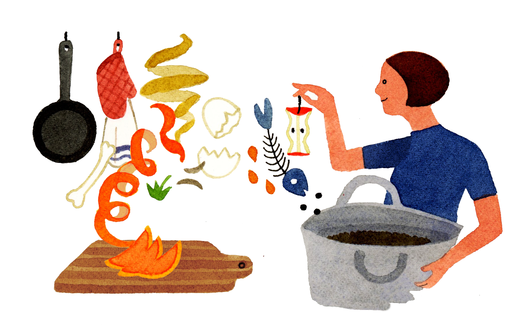 「どの家庭でも今すぐに始めて欲しいのが、生ごみのコンポスト(*1)化です。外で集めてきた落ち葉を段ボールに敷き詰め、そこに生ごみを入れていけばコンポストが完成します。より手軽に実践したい方は、市販のコンポストバックを使うのもおすすめですよ。台所に置いて、そこに生ごみを入れて混ぜることで堆肥をつくることができます。ゴミの削減だけでなく、資源であることを家族で意識する機会になるはずです」。