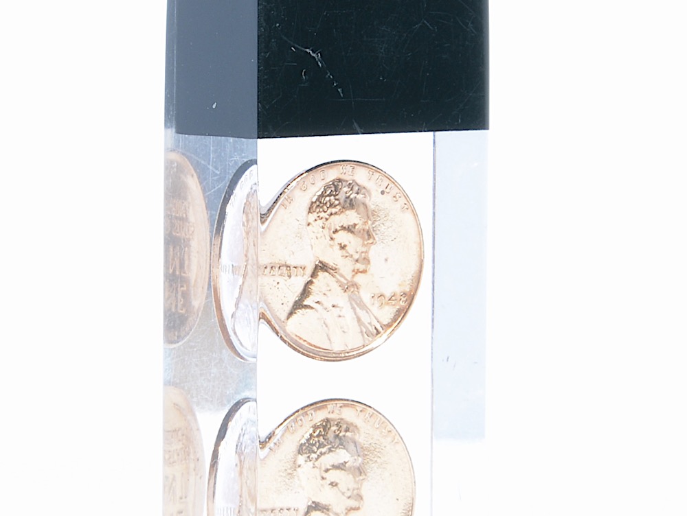 普段、仕事では無駄をそぎ落としたシンプルなものをデザインしていますが、こちらはその真逆。なぜ栓抜きに1セント硬貨を封入したのか、誰が作ったのか、記念品なのか、お土産か、全てが不明で理解不能。自分では思いつかないものはアイデアの幅を広げてくれるので、その最たるものとして手元に置いています。