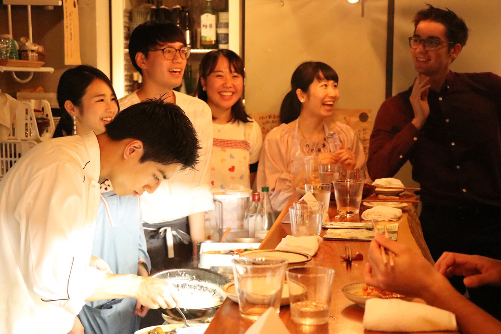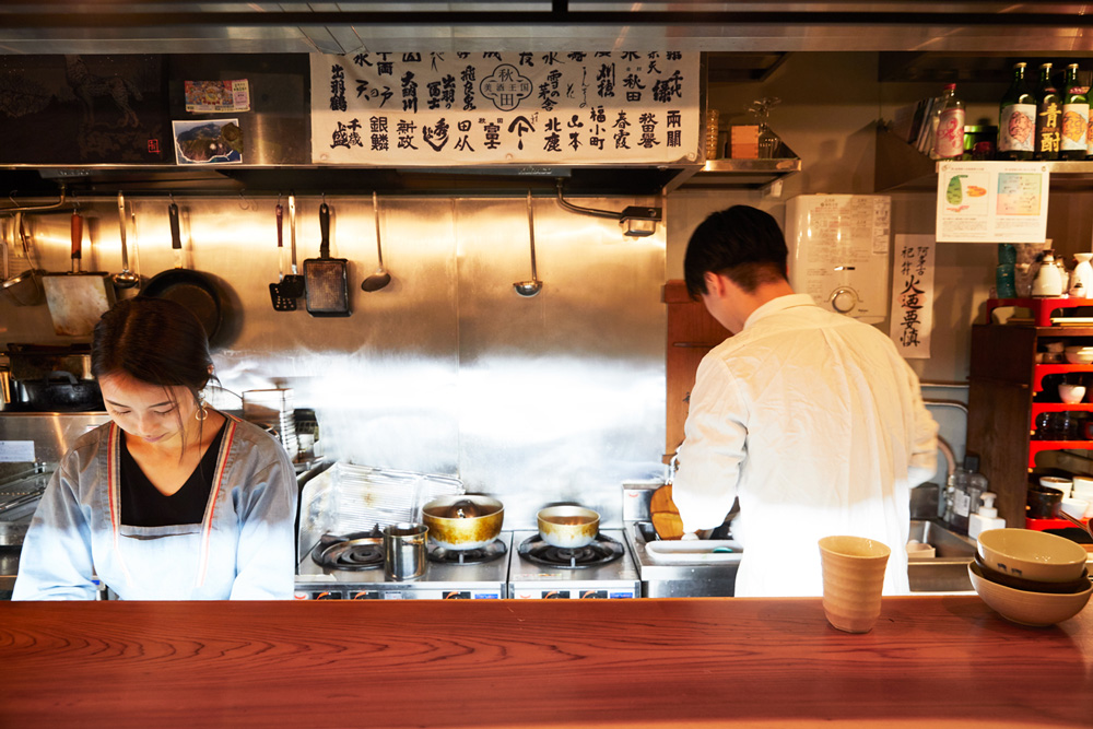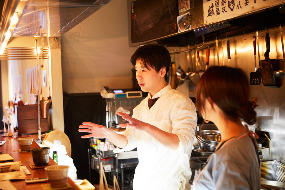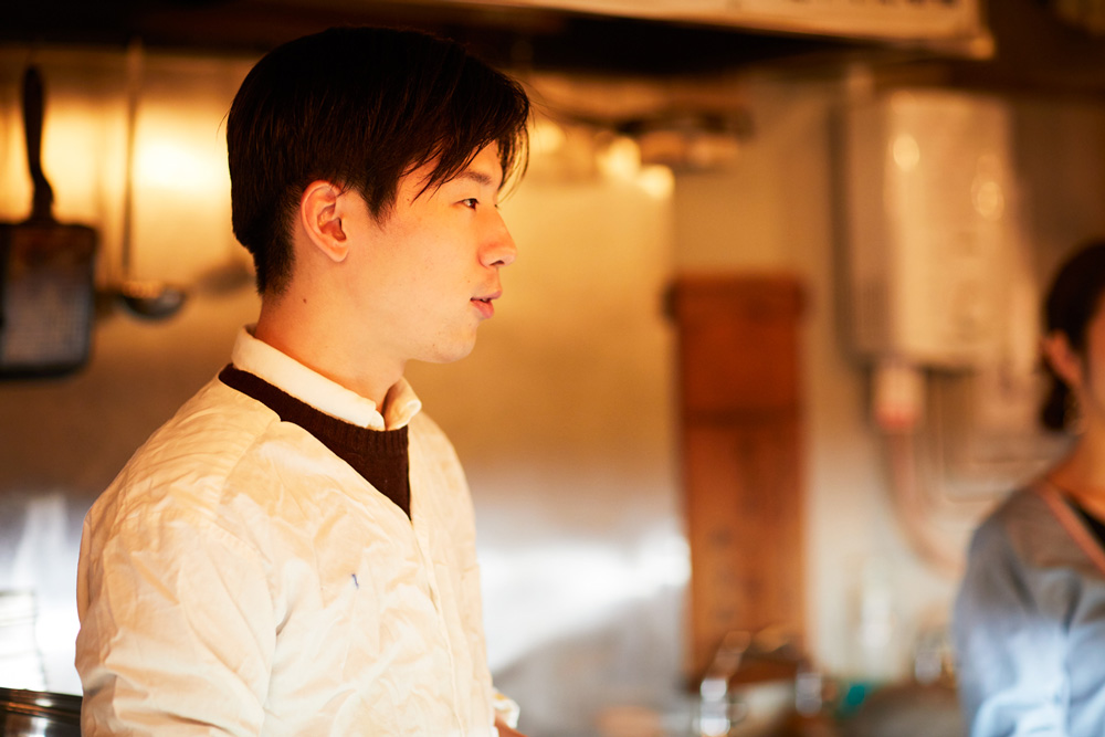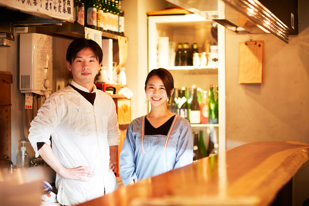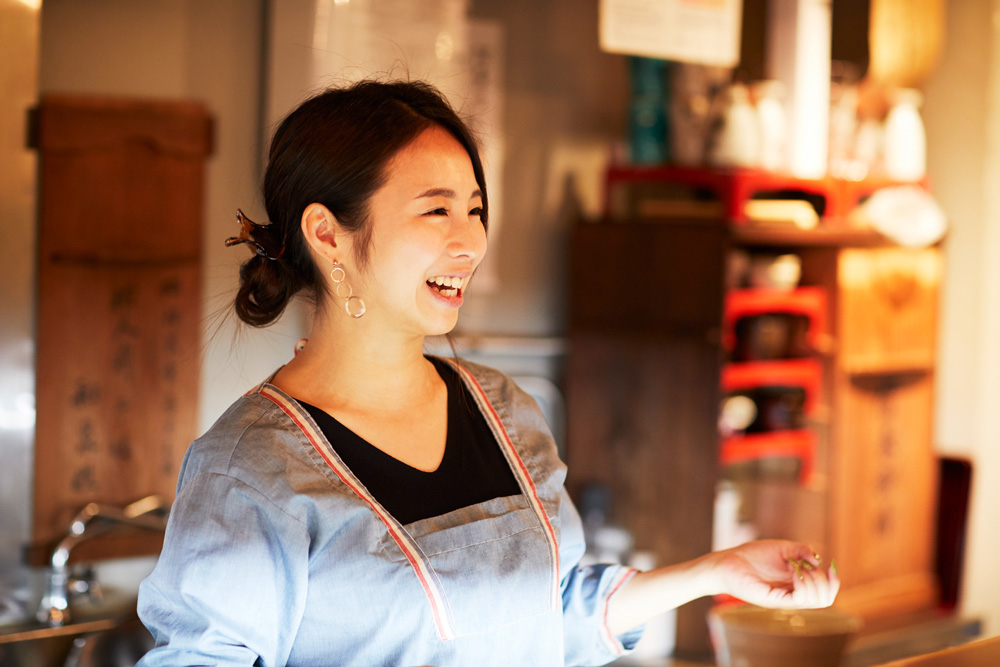 「友人と私の3人で、この〈むらむすび〉に夜ごはんを食べに来たんです。カウンターに座って飲んでいたんですけど、オーナーの佐藤さんが一人ですごく忙しそうに働いていて……。料理のオーダーも立て込んでいたし、洗い物もたくさん溜まっていて。ぼうっと座って見ているのもなんだったので、『何か手伝いますか?』って気づいたら声をかけていました(笑)」(尾崎さん)