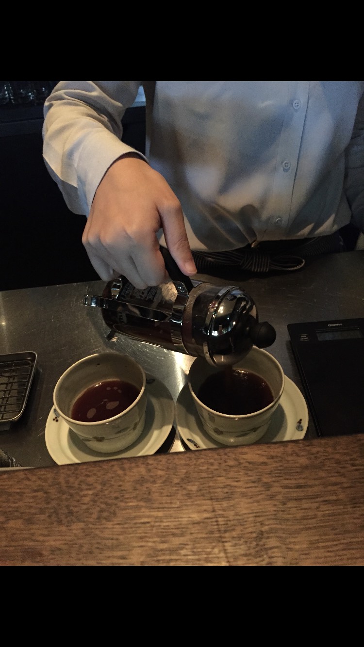 渋谷雷庵(ライアン)にて食後にフレンチプレスコーヒーを。豆のキャラクターをダイレクトに味わうにはこの抽出方法が一番おススメです。