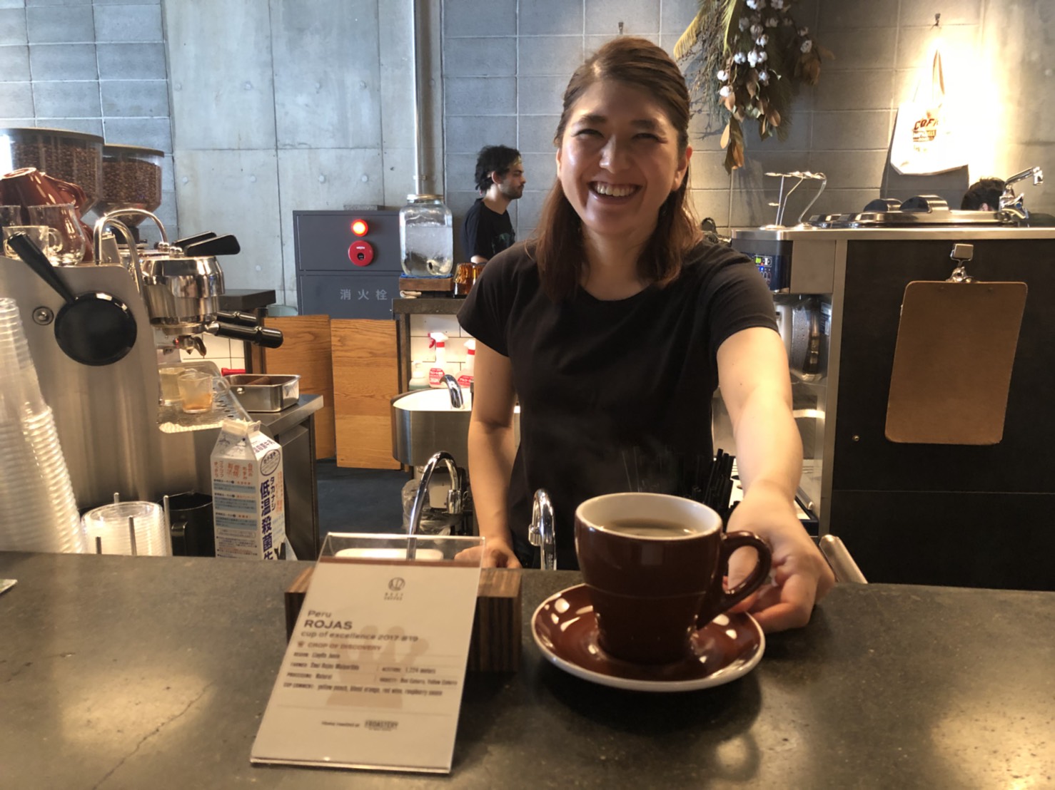 今日はロースタリーに珍しいバリスタが!彼女は江畑ロースター!普段は焙煎をしていますが、月に2、3度、こうして自ら抽出も行います。他のバリスタとコミュニケーションも図り、さらなる焙煎の向上へとつなげてくれます!