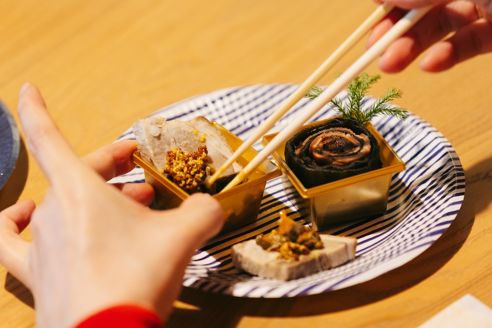 今回試食したのは、料理家・平野由希子さん監修のワインに合う『おつまみおせち』。カルダモンやターメリックを入れた田作りなど、スパイスが効いたおせちに参加者も舌鼓を打っていました。
