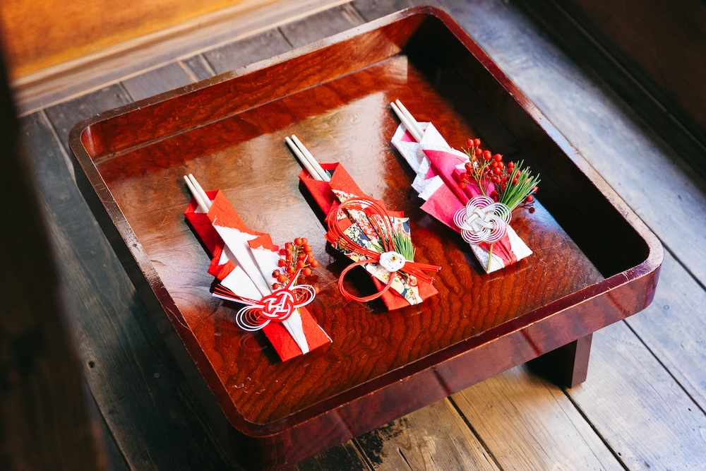 お正月などハレの日に用いる祝箸は、柳の木から作られています。長さは末広がりの八寸(24cm)。箸の両端が細く、真ん中が太くなるように削られている両口箸は、人間と神様が片側ずつ使って同じ食事をする、といわれています。なので、使う際には取り分け用の箸も用意してくださいね。