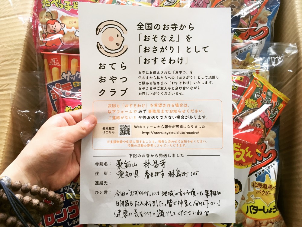 「最近では、あらかじめおすそ分けされることを想定して、レトルト食品、タオルや洗剤、文房具といった日用品をお供えしてくださる方も増えました。スタートした当初は、ここまで広まってくれることは考えておらず、お坊さんとして何かいいことができたらと思って始めたこと。活動を知った方がこんな風に動いてくださるとは考えていなかったので、とても驚いていますし、ありがたいと思っています」。