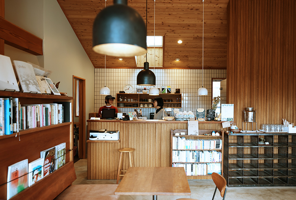 〈のほほんBOOKS & COFFEE〉はカフェも併設。近隣から遠方の人まで、たくさんの人が訪れる