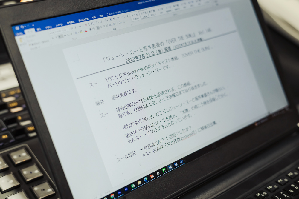 電子機器メーカーのLenovoさんがスポンサーになってくださった時は、『Lenovoさんのパソコンを使ってやりたいこと』というリスナーの夢を応援するようなプレゼント企画を行ったんですが、300通以上の応募をいただきました。しかもみなさん、情熱たっぷりの文章を綴ってくださっていた。それに感銘を受けて、スーさんと堀井さんは自腹でパソコンを購入して、プレゼント数を増やすほど盛り上がった企画となりました。このように、スポンサー、リスナー、パーソナリティ全員で番組を楽しむ。もちろん、僕たちスタッフ陣も。これは、とてもいい循環だなぁと感じています」