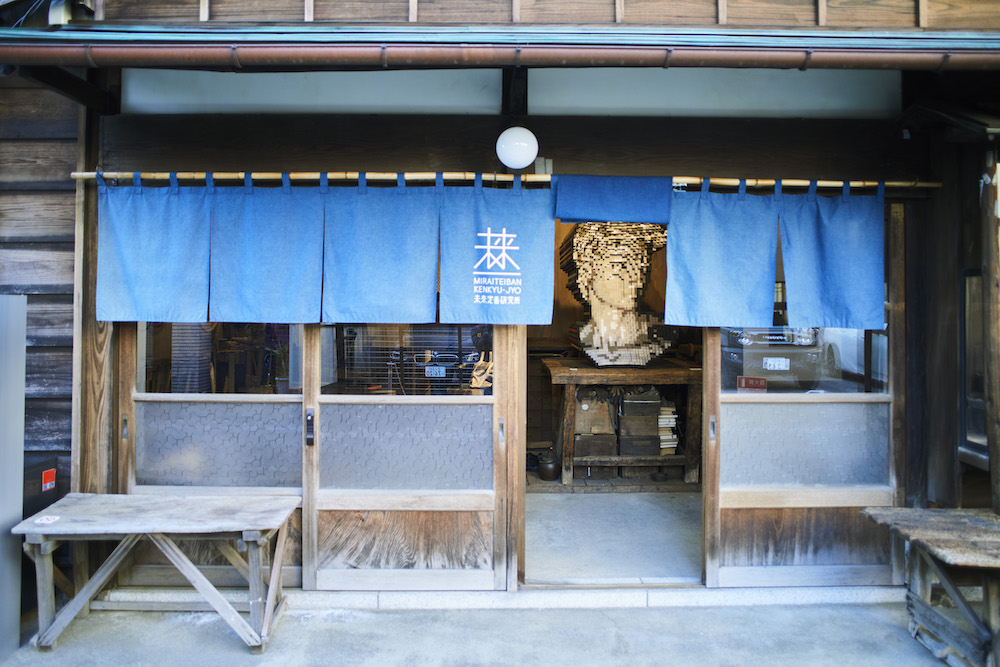 未来定番研究所の古民家オフィスから覗く、zerotaroさんの作品〈David Head〉。