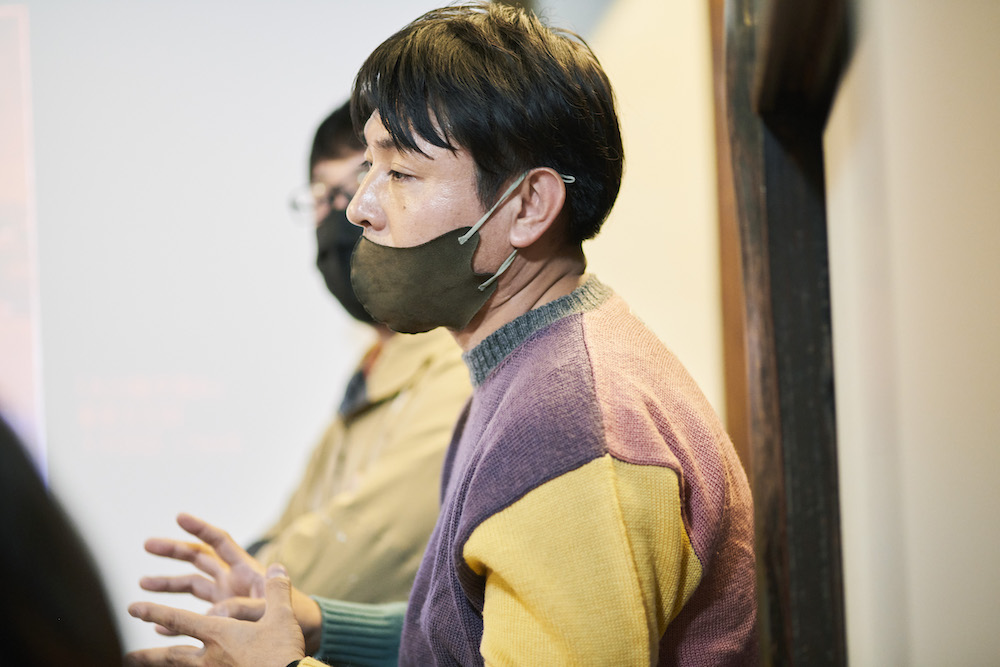 浮世絵からNFTまで、時代を大きく跨いだアートについてのお話も無事終了。すっかり陽が落ちても、まだまだ個展を見に訪れる人たちが。イベントを終えて出てきたお二人に、あれこれ気になったことを質問されていました。