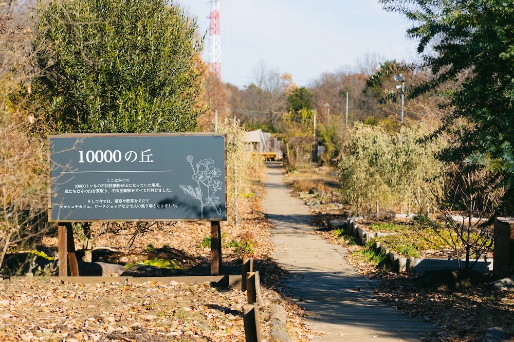 「10000の丘」エリアは、かつて1万トンのごみが不法投棄されていた場所だそう。「当時は私の背丈くらいのごみが積み重なっていたんですよ」と石坂さん。