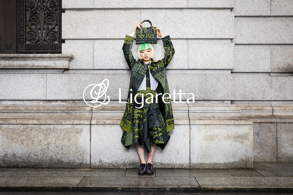 そうですね、僕がプロデュースし、大丸有エリアマネジメント協会(リガーレ)と共同で設立したアップサイクルファッションブランド〈Ligaretta(リガレッタ)〉は、「排気削減と素材循環で街の物語を紡ぐ」ことをテーマにしています。街路灯のフラッグを制作している時、フラッグは使い終わったら捨てられていることを知り、街から廃棄されるものを、街の物語が染み込んだ素材として生まれ変わらせることができないかと考えたんです。フラッグ広告にかかる知的財産権の問題を解決しつつ、服のパターンにも工夫を凝らすことで、布のロスを10%におさえた服のデザインを実現させました。