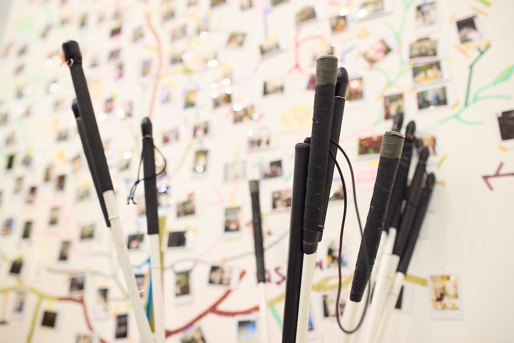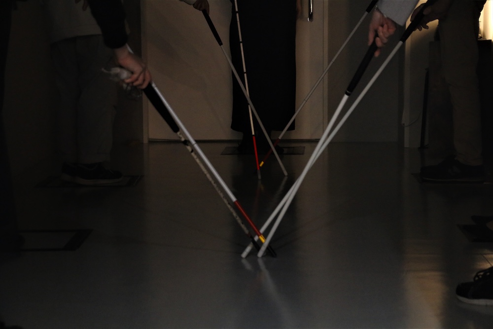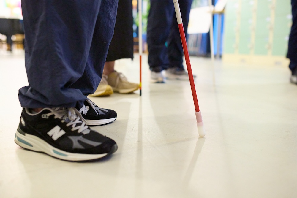 ノージーさんからの提案に、参加者たちは戸惑いながらも白杖で地面を叩いて、お互いの位置を把握していきます。
