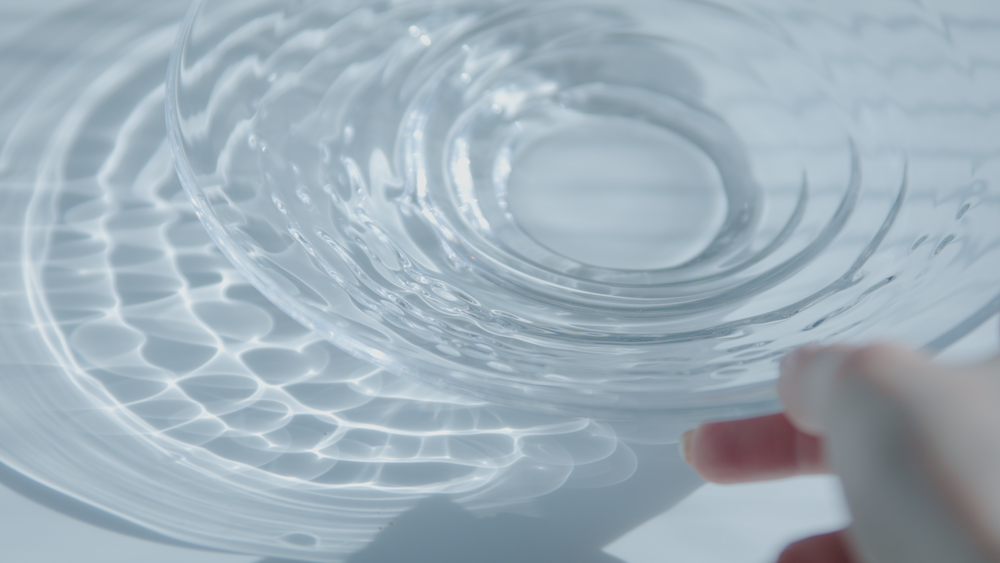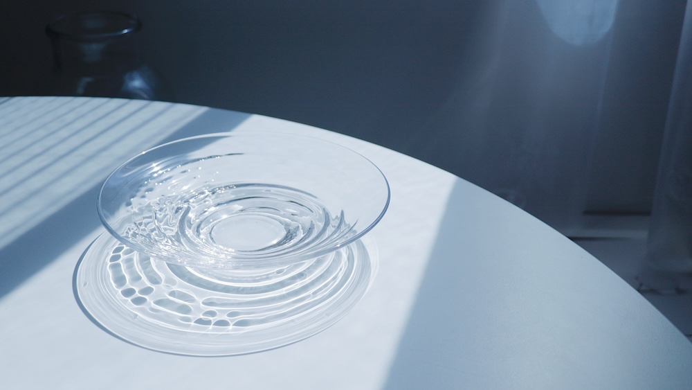自宅にある透明コレクションは100点ほど。その中で思い入れのある作品を1つ挙げるとしたら、京都に出かけた時に出会った『minaniwa(みなにわ)』ですね。水の波紋を切り取ったガラスの器は、まるで時間が止まったような感覚にさせてくれるんです。