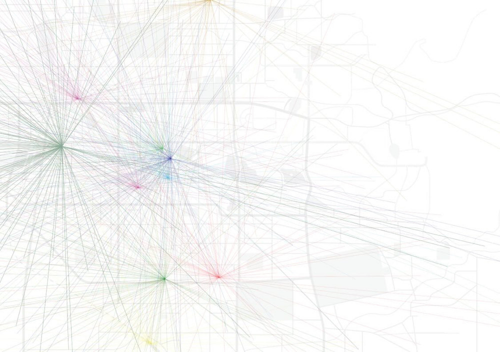 街の中にゆるくつながれる場所が点在し、そのゆるやかなつながりが街をまとっている様子を描いた藤岡さんの設計図。「つながり」は実際には目に見えないが、カラフルに軽やかに、街を彩っている。